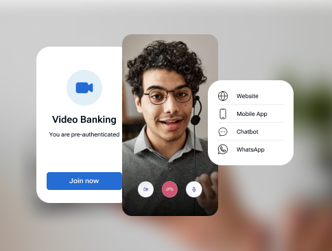 Give your customers the option to connect with your Video Bankers instantly from any of your digital assets like website, mobile app, chatbot or WhatsApp handle.